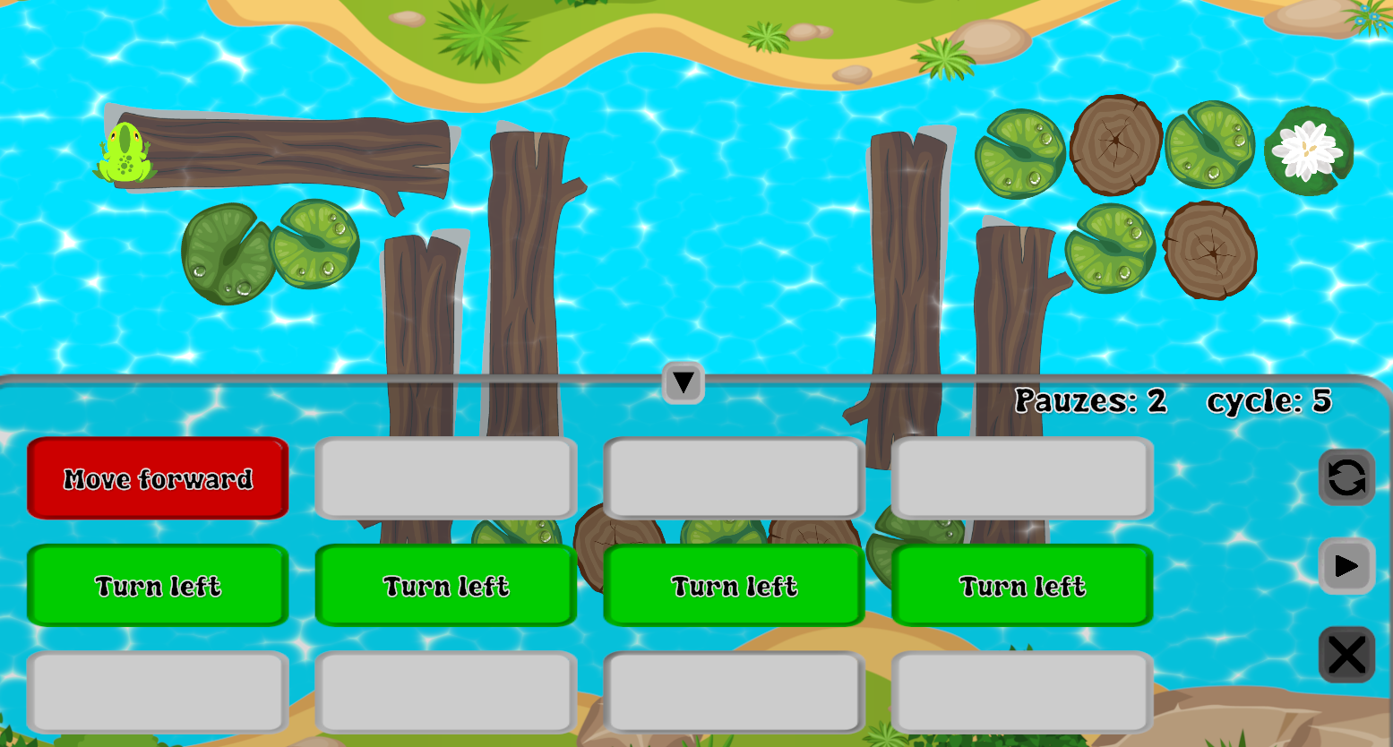 You play as a frog that is controlled by a loop cycle. The goal in this game is to reach the plant within the given cycles.